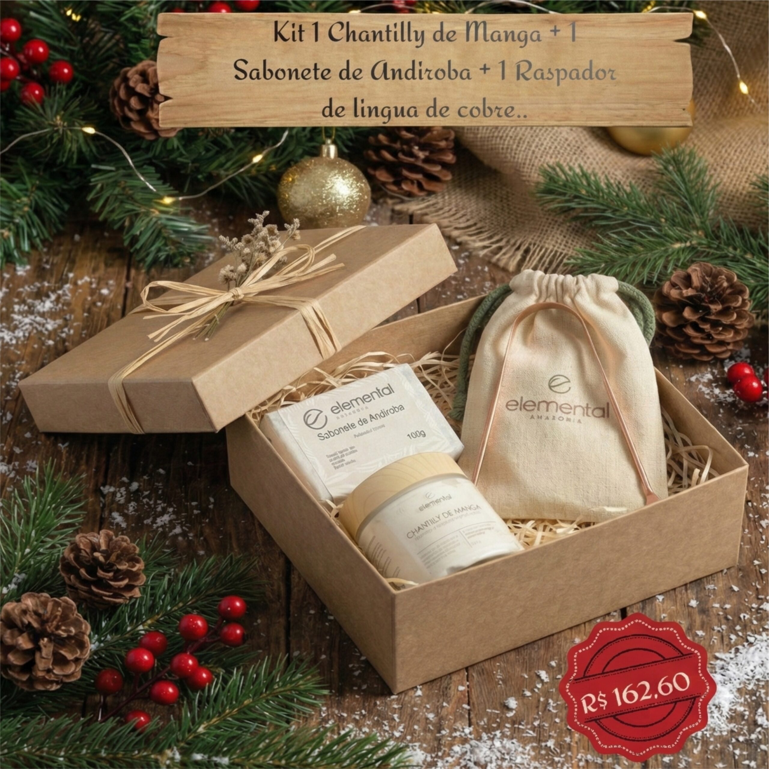 Criado para quem busca bem-estar completo, este kit reúne autocuidado, saúde e o toque nutritivo da Amazônia. O Chantily de Manga, o Sabonete de Andiroba e o Raspador de Língua de Cobre formam uma combinação sofisticada, ideal para presentear com intenção e delicadeza nesta época natalina.